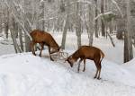 У меня чесался лоб, Хоть бы кто-нибудь помог! Я олень и друг олень, Вместе ходим целый день.