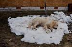 (4) sewa: ощущение, что она не спит, а умерла. Название фото «Последний сугроб» с лопатой у стены прямо указывает на то, что это последнее пристанище собаки. Типун оставьте себе , а с собачкой пусть будет всё хорошо.